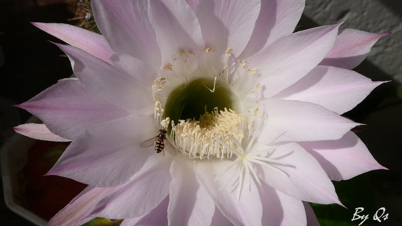 A virág hatalmas, megmértem : 14cm volt az átmérője! Én még soha nem láttam ekkora kaktusz virágot. (ez ugye nem jelent semmit, de nekem mégis meglepő volt.)