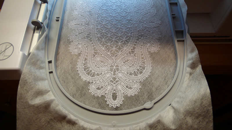 Szép ez a csipke. Én még csak egy dobozkát készítettem hímzőgépes csipkével. Annak is 107 perc volt 1-1 eleme. De megérte.
