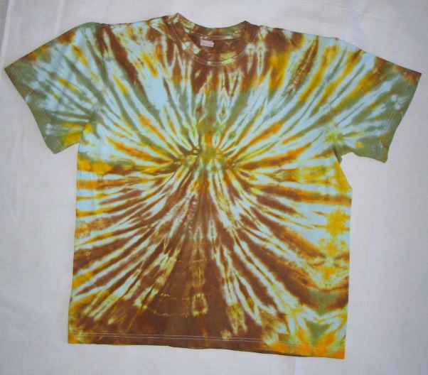 Ez az alap, mikor a spirálban összetekert póló minden cikkét más színűre, ha lehet a szivárvány színek sorrendjében festjük be.