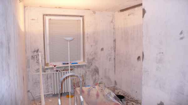 A kezdetek kezdete, a bontás nagyon gyorsan ment. Ennyire sikerült lecsupaszítani a szobát, azaz teljesen, betonig. A ház kb.30 éves, így a kép jobb oldalán látható bemélyedésben is egy ilyen koros beépített szekrény volt ( fölül nagy polcokkal, amit sose értem el), amit egy az egyben kidobtunk.
