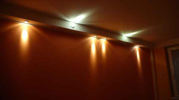 A panelban elég nehéz a világítást szépen megoldani. (szinte lehetetlen a kábeleket láthatatlanul eltüntetni) Itt készítettünk egy kis gipszkarton dobozkát, ahol jól elférnek a vezetékek és a ledes spot lámpák. Nem is fogyasztanak sokat, ilyen halovány nappal….