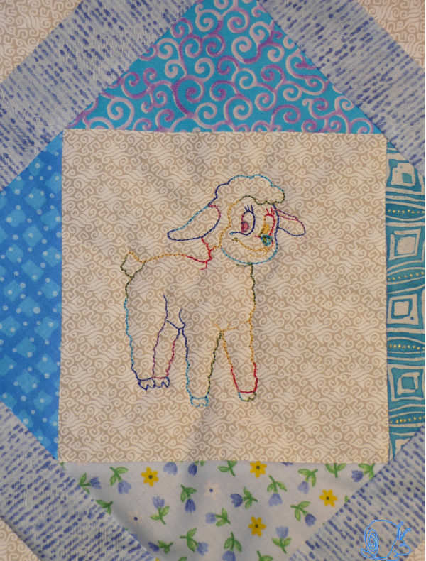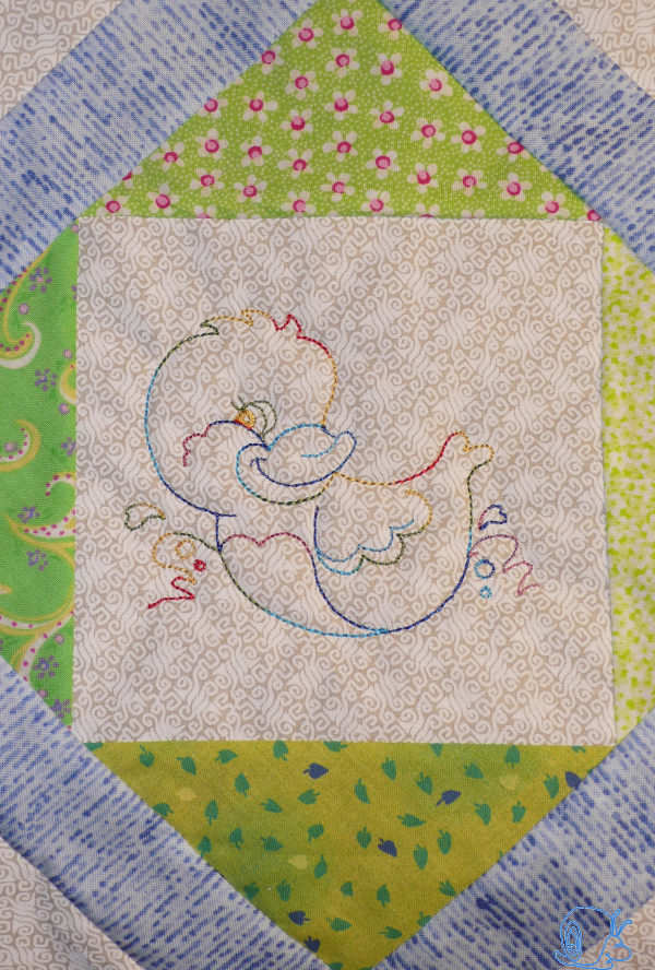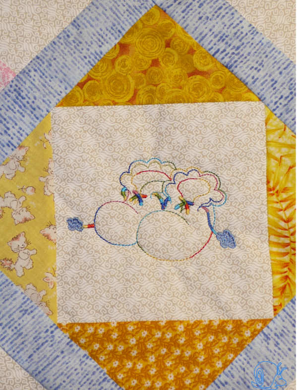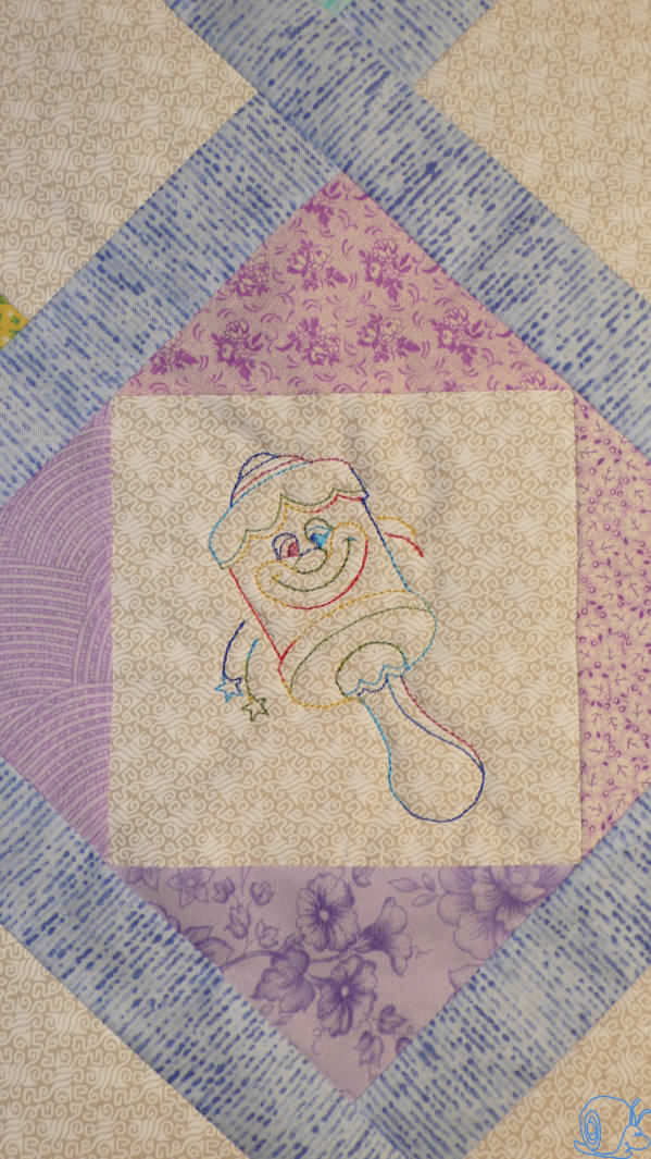 Szerettem volna valami vidám, de nem zavaróan színes falvédőt készíteni. Így esett a választásom ezekre az előre kiszabott négyzetekre és háromszögekre. Még csak tervezgettem, mikor már tudtam, hogy ezekkel a hímzésekkel szeretném díszíteni.