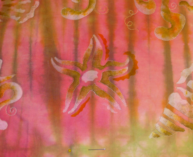 Ezért nem olyan domború.A procionnal festett anyagra 3 különböző színű textilfestékkel festettem a mintát.